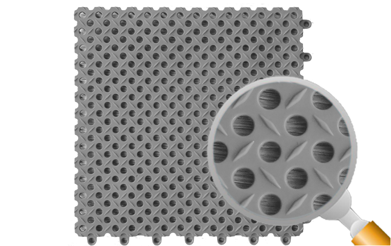 暢悠防滑地墊K7系列的優點是:1.防滑:表面個性化紋理設計,可有效增加地板與鞋底的摩擦力,防止行走時打滑。2.耐磨性:表面經過特殊處理,具有高度耐磨性,可承受重量和磨損。3.防污:防水防潮,易于清潔,也不容易滋生細菌。4.安裝簡單:采用卡扣拼接設計。